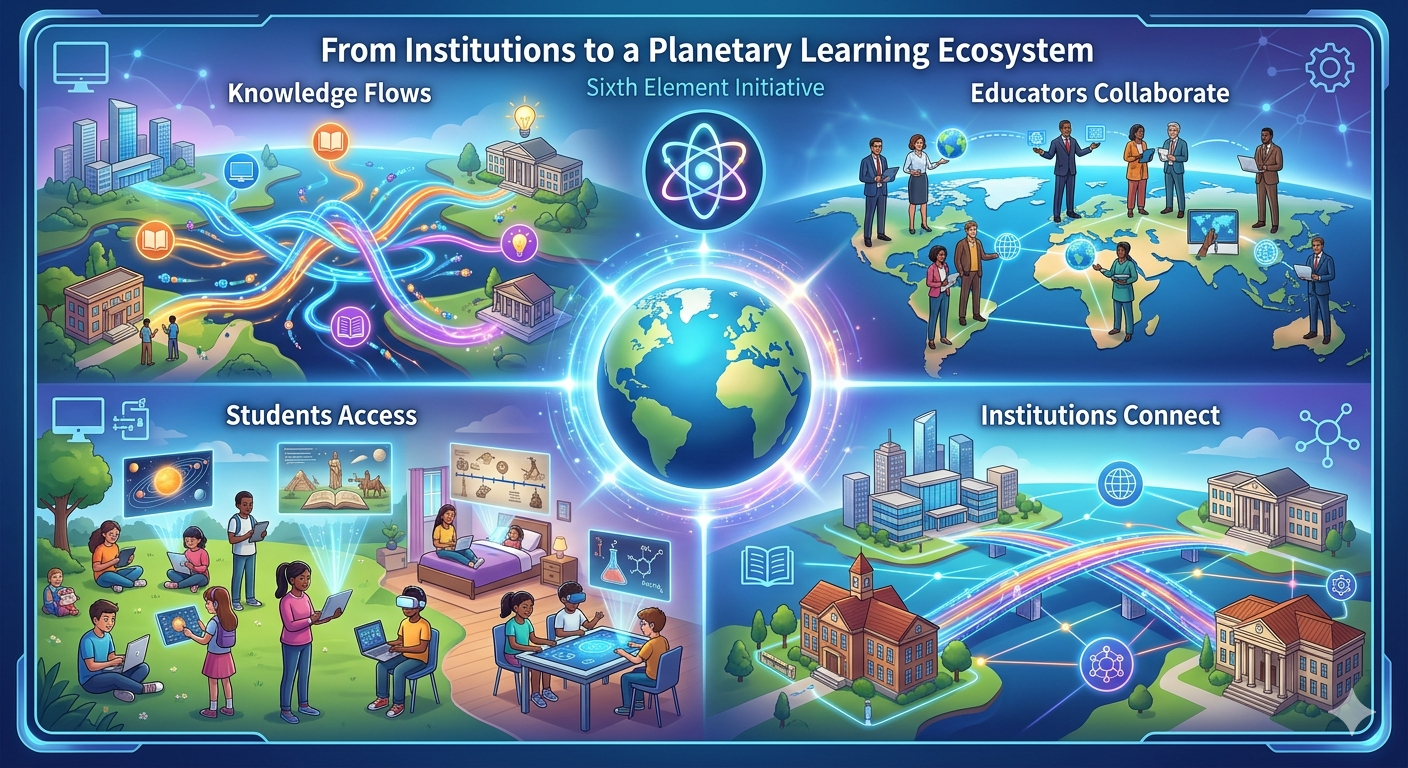 The Sixth Element Initiative therefore proposes a transformative idea: Just as societies built roads to connect cities and communication networks to connect nations, the twenty-first century must build learning networks that connect minds across the planet.