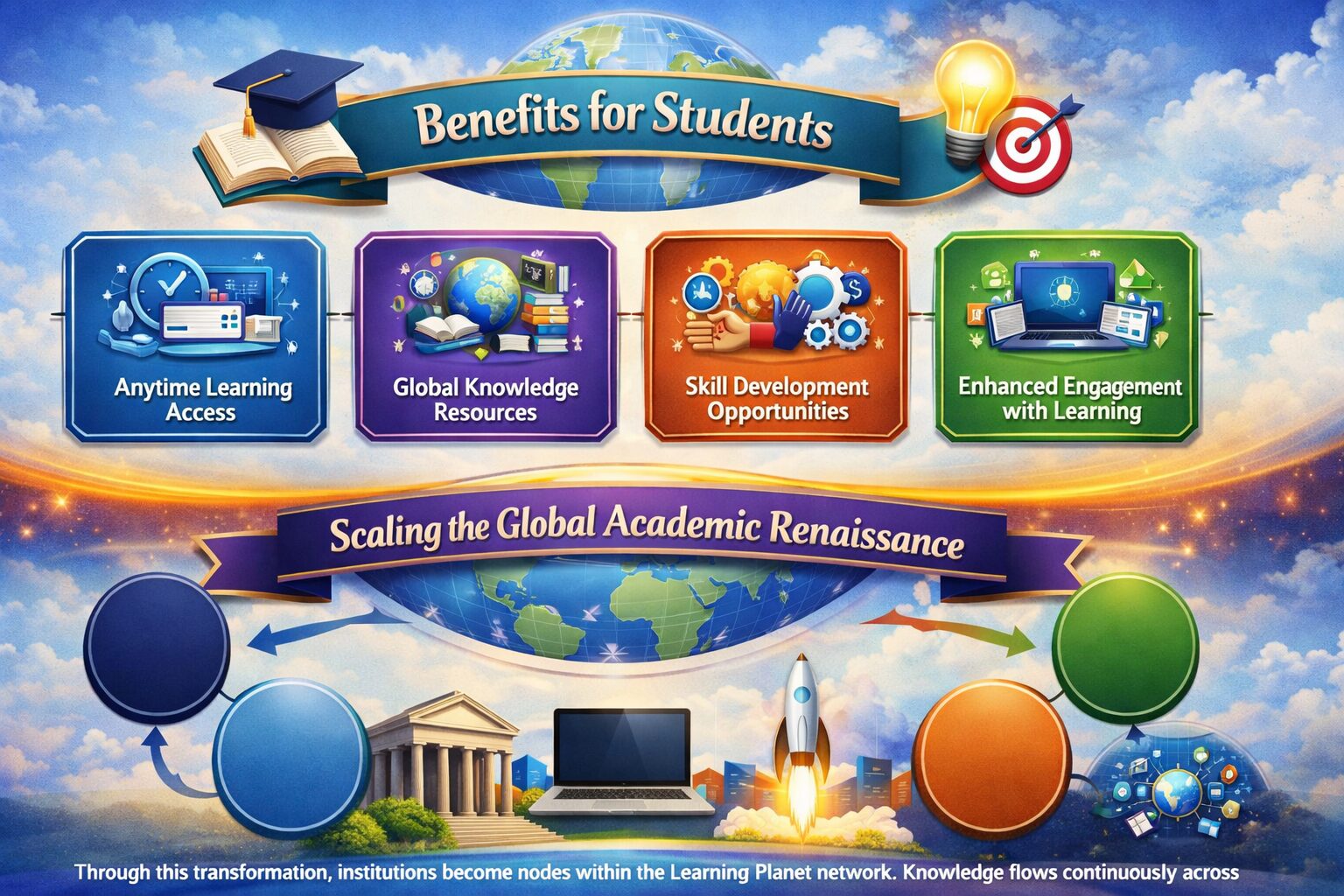 The vision of the Learning Planet therefore requires a new kind of Hybrid Method of Education infrastructure: A global digital ecosystem capable of connecting institutions, educators, and learners.