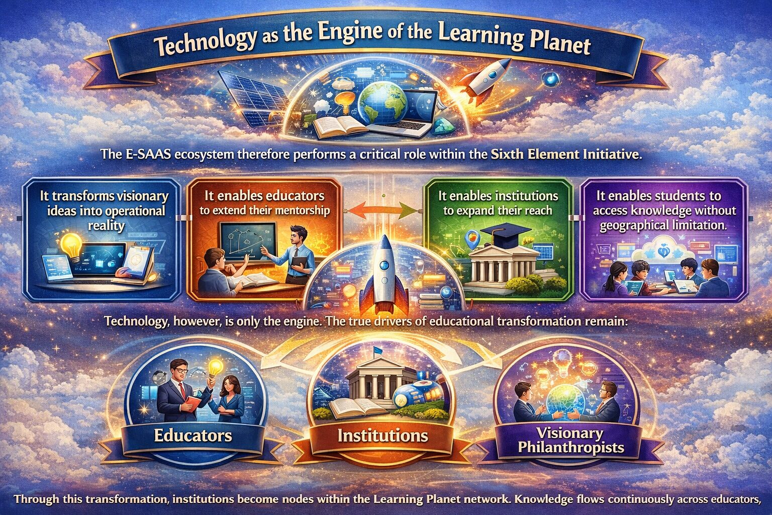 The technological backbone of the Sixth Element Initiative consists of a suite of integrated digital platforms designed to support the complete lifecycle of education.